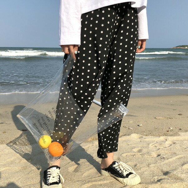 【即納あり】ドットシフォンで仕上げたウエストゴムクロップドワイドパンツ 原宿系 ファッション レディース ゆめかわいい 服 奇抜 派手 個性的 ダンス 衣装 コスチューム ヒップホップ 韓国 大きいサイズ 180612