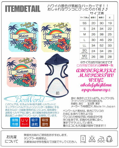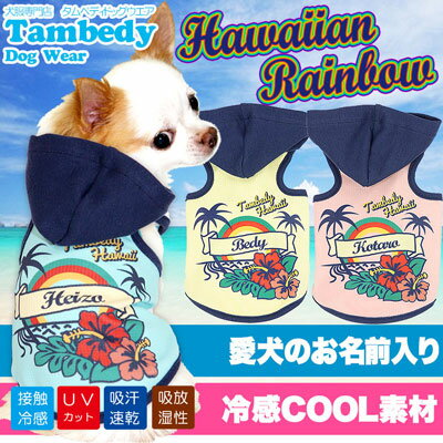 【犬 服 犬の服 ドッグウェア 名入れ 春 夏】ひんやり冷感クール 愛犬のお名前入り ハワイアンレインボー パーカー(SP/BW)【ペットウェア チワワ ダックス トイプードル おしゃれ シュナウザー 暑さ対策 熱中症対策】