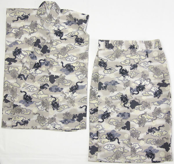 羽織と着物のセットで、着物は2部式で上着とスカートと分かれており、上着は着用しやすく袖がありません、スカートはマジックベルトで開閉で後ろがゴムで、上着は紐がありませんので衿が広がる場合はスカートの中に入れて着用してください、着付けが大変に簡単です。