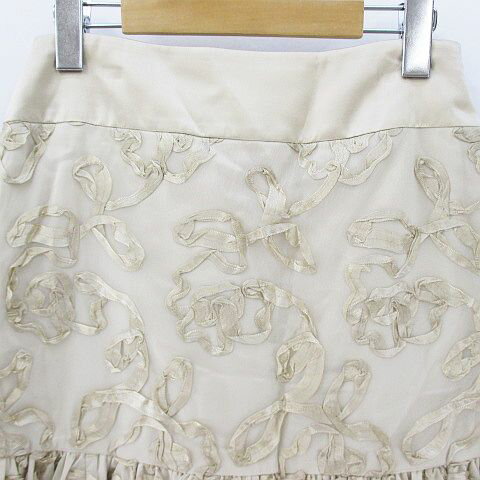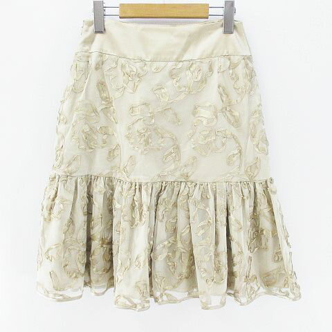 【中古】ユーバイウンガロ U by ungaro 膝丈 フレアスカート 絹 シルク 42 ベージュ系 日本製 チュール リボン 裏地 レディース 【ベクトル 古着】 190911 ベクトルプレミアム店