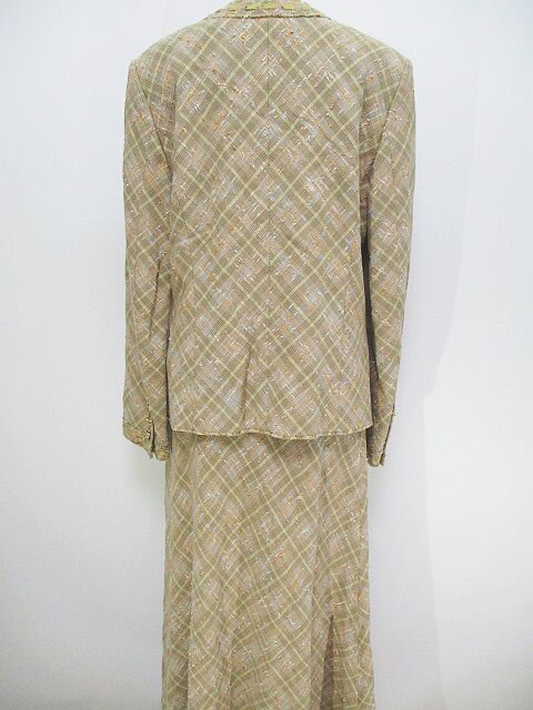 【中古】インゲボルグ INGEBORG セットアップ スカート ジャケット ツイード 柄 チェック リボン ボタン L ベージュ 綿 コットン 日本製 レディース 【ベクトル 古着】 190906 ベクトルプレミアム店