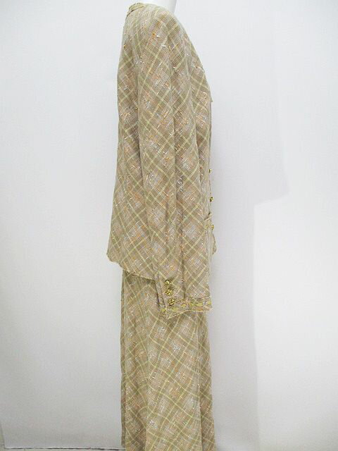 【中古】インゲボルグ INGEBORG セットアップ スカート ジャケット ツイード 柄 チェック リボン ボタン L ベージュ 綿 コットン 日本製 レディース 【ベクトル 古着】 190906 ベクトルプレミアム店ブランドインゲボルグ INGEBORG表記サイズL実寸サイズ肩幅:42cm 身幅:50cm 袖丈:59cm 着丈:61cm ウエスト 68cm ヒップ 88cm 着丈 93cm 素材レーヨン 49% コットン 45% ナイロン 6% 裏地 キュプラ 100%色ベージュ系(画像参照)仕様肩パット着脱不可状態若干の使用感は感じられますが、特に目立った汚れ・ダメージ等なくまだまだ問題なくご利用頂けると思います。