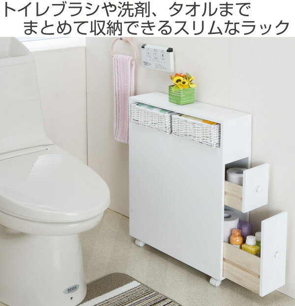 サイズ約 幅15.5×奥行50×高さ71(cm)重量約 11.5kg引き出し段数2段キャスターあり内容量1台付属品:バスケット2個材質本体:MDF(ラッカー塗装)バスケット:柳(ラッカー塗装)種類ホワイト、ナチュラル生産国中国製組立状態完成品トイレ収納カテゴリから探す商品区分:トイレ収納 多機能トイレラック スリム キャスター トイレ収納棚 トイレ収納ラック幅15.5cm!スリムながらバツグンの収納力引き出し2段、バスケット2つ、裏側にはトイレブラシを収納できるスペースがあります。