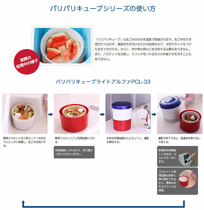 島産業 生ごみ減量乾燥機 パリパリキューブライト アルファ 1〜3人用 [PCL-33-BWB]ブルーストライプ【送料無料※沖縄・離島除く】自動停止機能付スタート予約機能付(3時間後スタート)モデル、生ごみ処理機 おしゃれ かわいい コンパクト 脱臭 静音
