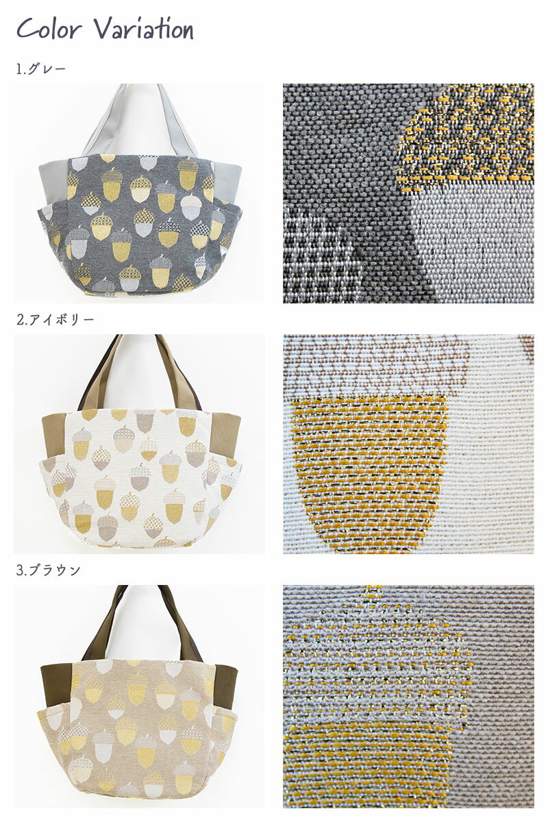 ジャカード ゴブラン あおりポケット 軽量 トート グラン 日本製 ジャカード ゴブラン あおりポケット 軽量 トート グラン 日本製 どんぐり柄 × メタリック 新シリーズ〔gland(グラン)〕 【日本製・品質保証・修理保証】 ヨーロッパを中心とした、インポートの上質な生地から作り出されるバッグたち 熟練した職人たちが、一つひとつの工程をこだわり、できあがった商品をみなさまのもとにお届けしております。