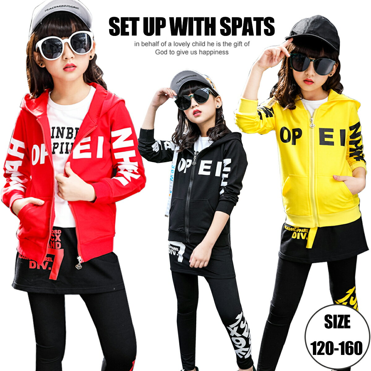 スパッツ付き セットアップダンス 衣装 HIPHOP ジャージ ダンスウエア レッド ブラック イエロー イベント ステージ 上下セット キッズ ジュニア 長袖 女の子 子供服子供服yuai